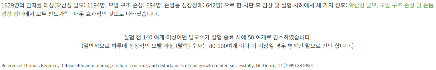 모발이 약하고 탈모증상이 있으시다면 고민하지 말고 판토가의 효과를 경험해 보세요.