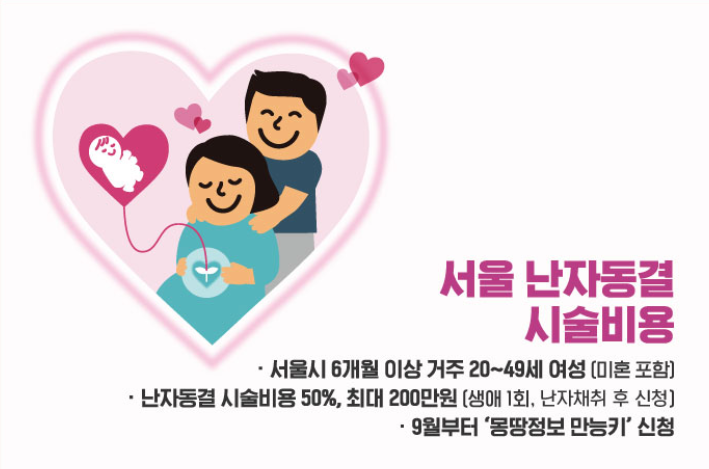 서울 난자동결 시술비, 서울형 아이돌봄비, 육아휴직 장려금은 9월1일 10시부터 신청 개시됩니다.